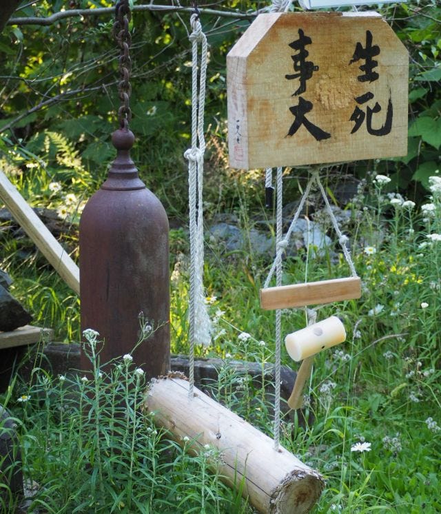 Two ways to call retreatants to the meditation hall: The bell (Tibetan and other traditions) or the mallet and wooden block called the Han (Japanese).